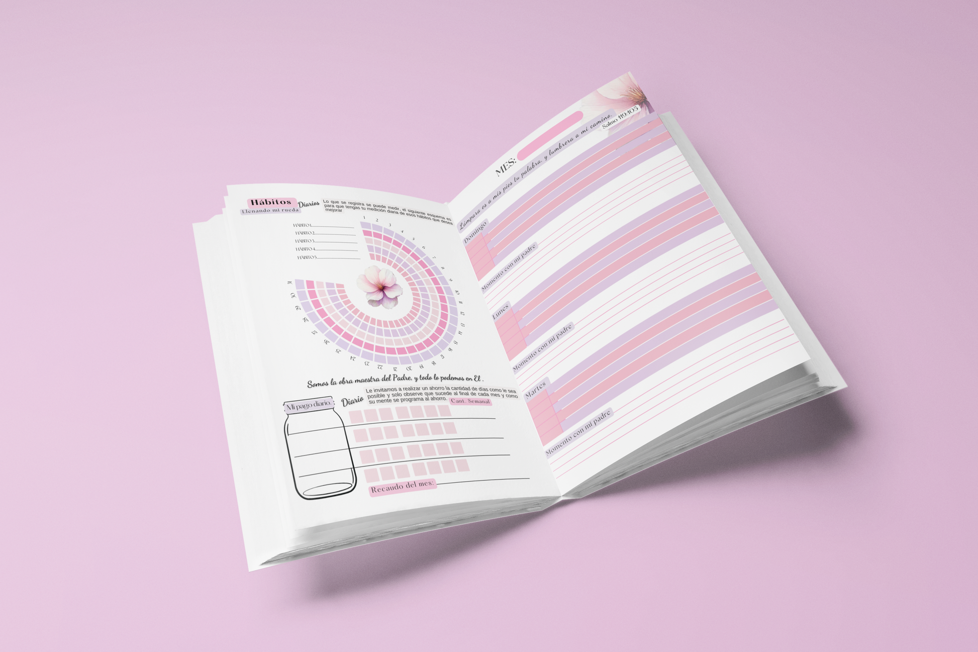- 📅 12 meses del planificador (PDF): cada mes con diferentes versículos bíblicos y 1 parábola de Jesús explicada de manera sencilla para tu crecimiento espiritual.